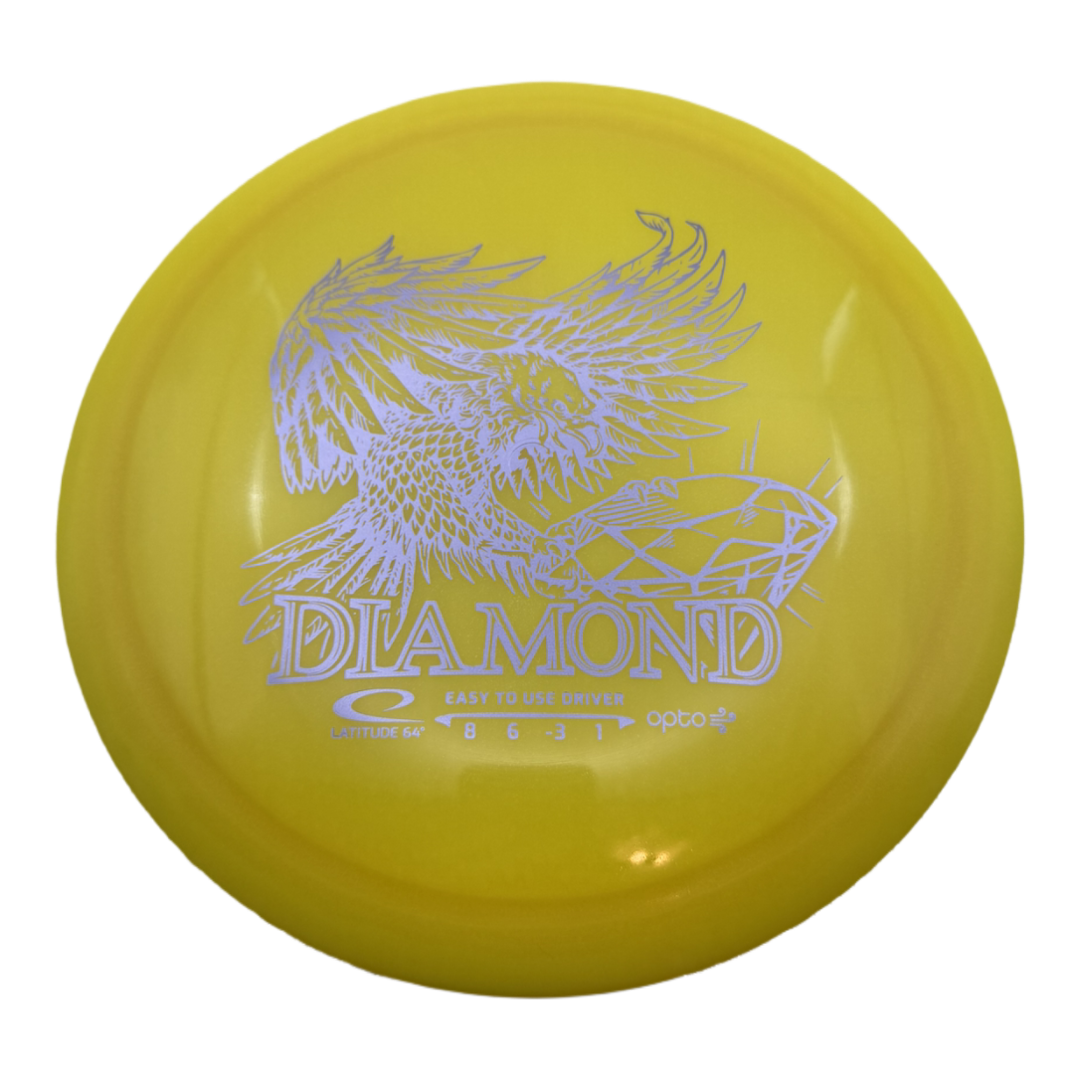 The Latitude 64 Opto Diamond is a lightweight, understable fairway driver designed to enhance distance for players with slower arm speeds. With flight ratings of Speed 8, Glide 6, Turn -3, and Fade 1, it offers excellent control and is especially beneficial for beginners, juniors, or those developing their throwing technique. Crafted from durable Opto plastic, the Diamond maintains its performance over time, making it a reliable choice for players seeking consistent, easy-to-throw discs.