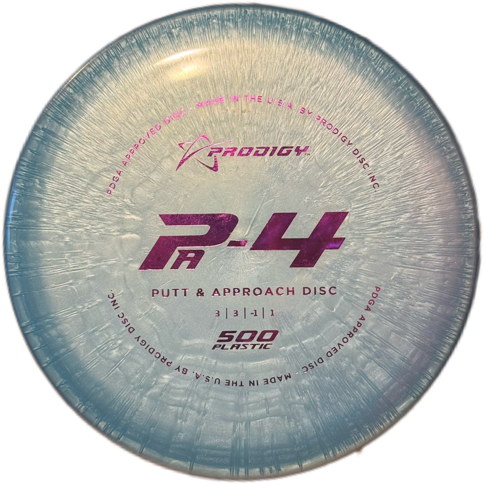The Prodigy PA‑4 is an understable putt & approach disc with flight numbers 3 / 3 / -1 / 1 It offers a smooth, straight flight with a gentle turn and modest fade—ideal for finesse approaches, gentle hyzers, or beginner-friendly putting with a bit of movement. The disc is designed for all skill levels, combining easy glide with dependable control for both up-shots and putts.