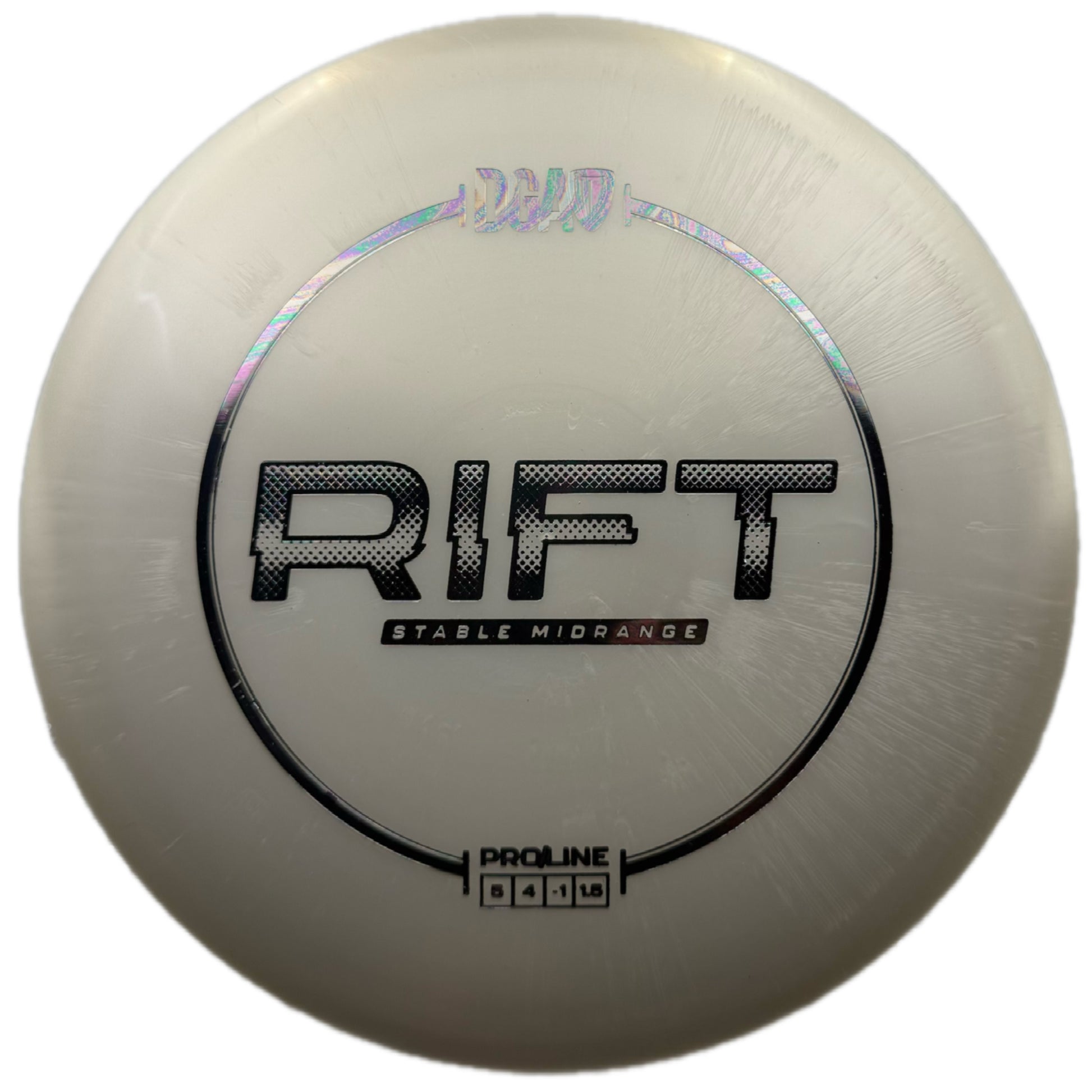 The DGA Rift is a straight-flying midrange with flight numbers 5 / 4 / -1 / 1.5, offering solid speed, dependable glide, a touch of turn, and a gentle finishing fade. It excels at point-and-shoot tunnel lines, slight turnovers, and controlled midrange drives with reliable placement. Comfortable in the hand and forgiving on release, the Rift is a great all-around mid for players who value consistency and control.